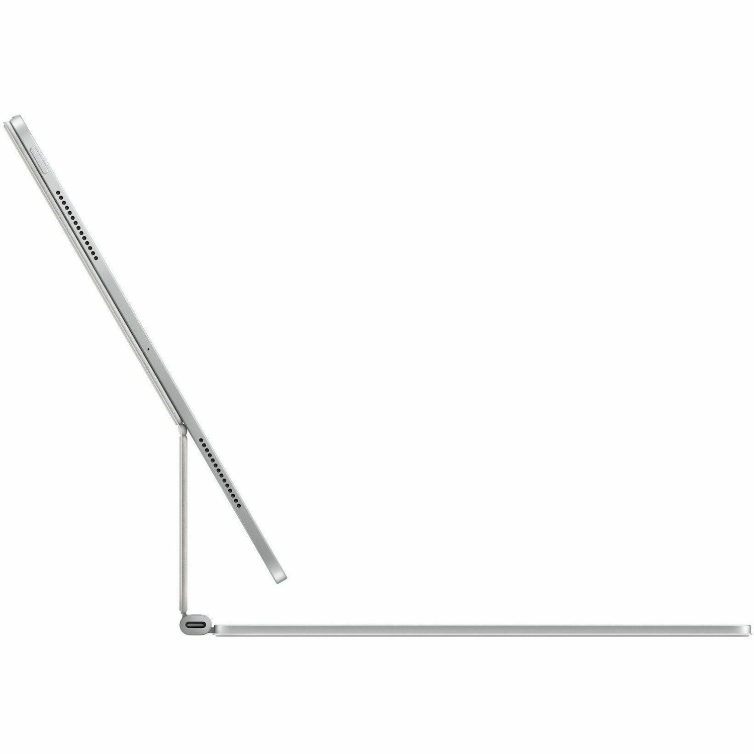 Magic Keyboard for iPad Pro delivers an amazing typing and trackpad experience in a sleek, portable new design with aluminium palm rest. The keyboard includes a 14-key function row for quick access to features like screen brightness and volume controls, and a USB-C connector for pass-through charging. Its floating cantilever design smoothly adjusts to multiple viewing angles.