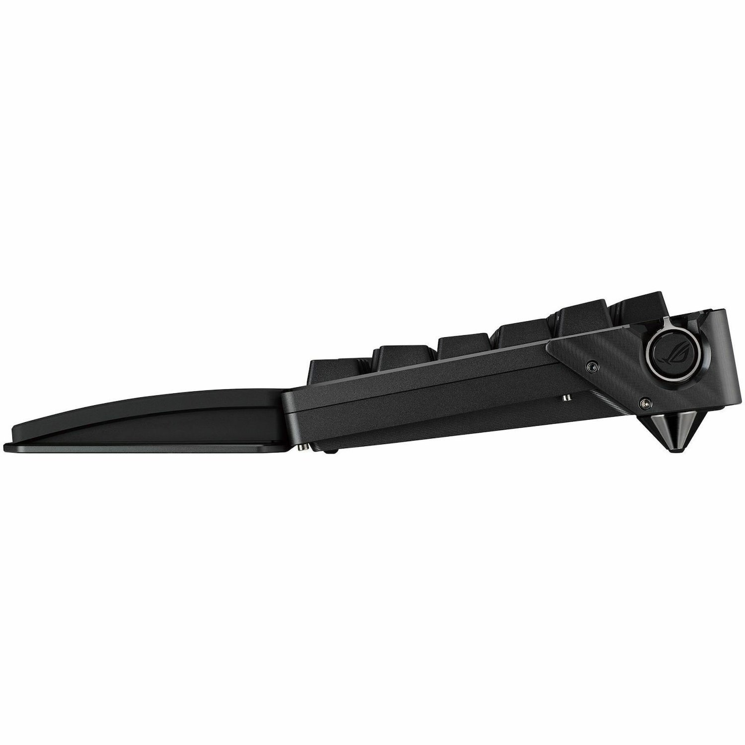 The ROG Azoth Extreme boasts premium aesthetics with its full aluminum-alloy chassis and metal frame, featuring a distinctive bladed pattern. The bottom chassis is achieved through 12 steps of intricate manufacturing processes, including sandblasting, anodizing, CNC machining, and more.