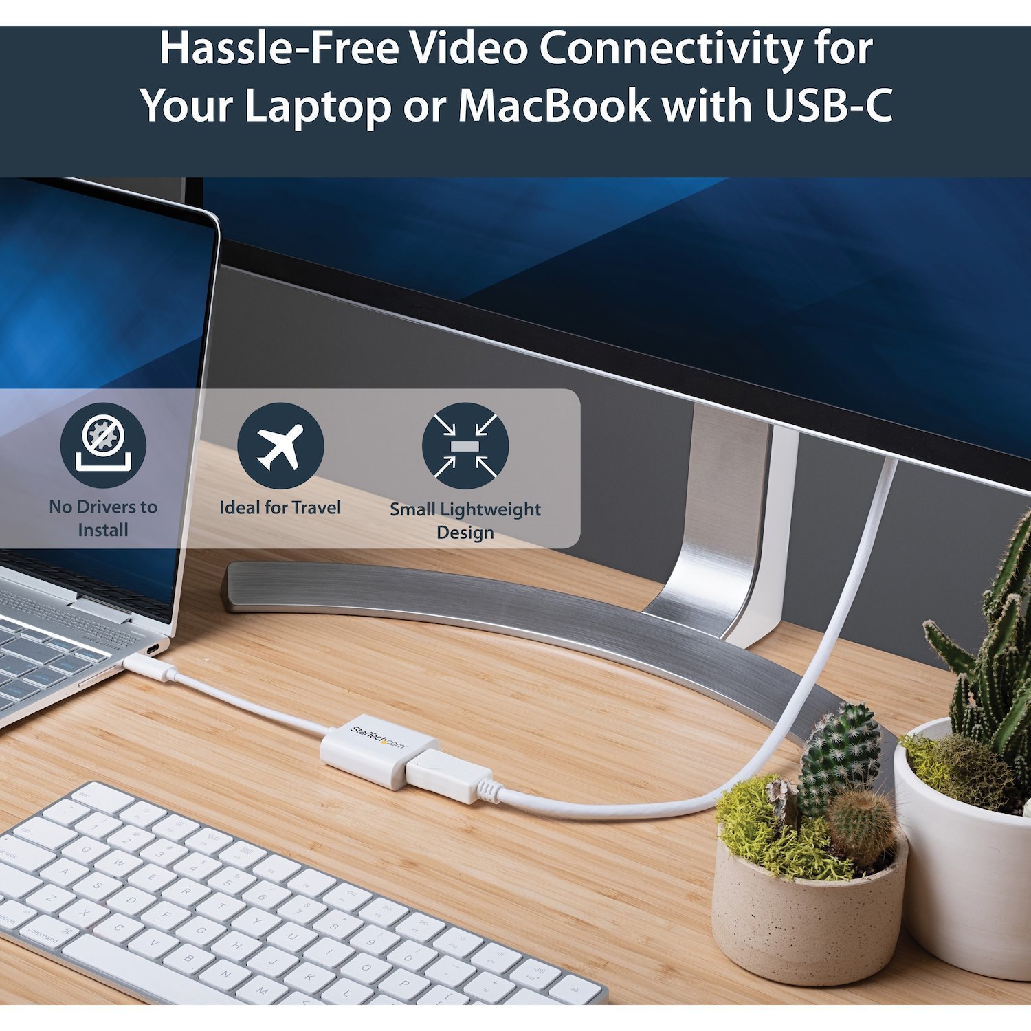 With its all-white design, this USB-C video adapter is the perfect accessory for your MacBook with USB-C. The compact adapter is lightweight and easy to take with you in your laptopbag or carrying case, which is great for BYOD (Bring Your Own Device) applications at the office.