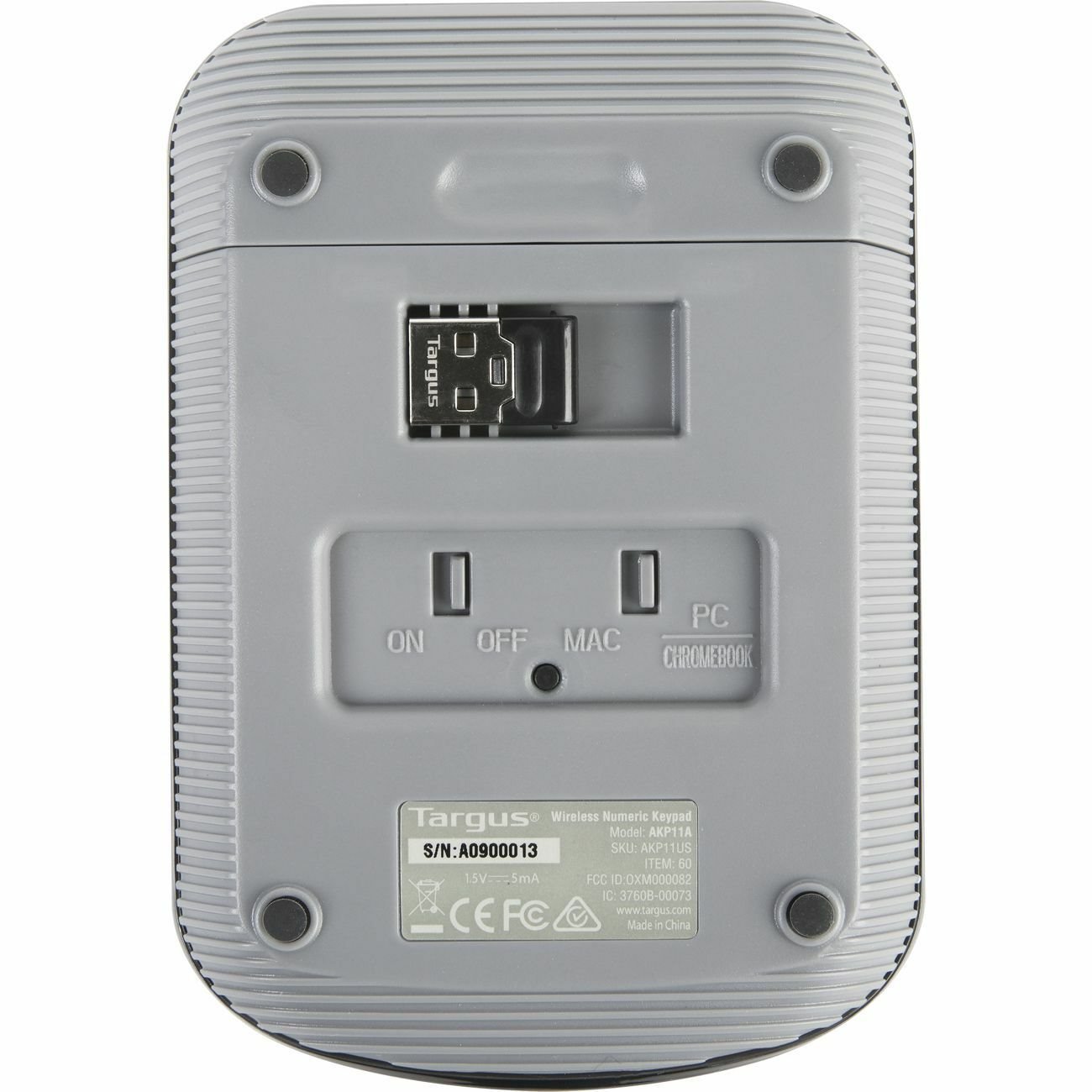 The Targus Wireless Numeric Keypad allows users to type numbers into spreadsheets and other applications quickly and easily. The full-size 19mm keys improve speed and accuracy by making it easier to locate and press the numbers you are looking for. The integrated ergonomic tilt provides added comfort which helps reduce wrist strain after a long work day. Wireless technology provides a cordless workspace, and for added convenience, the receiver stores inside of the device when not in use so it's easy to locate whether in the office or on the road. An integrated battery indicator light lets users know when batteries are low so they are sure to have replacements when needed. The Targus Wireless Numeric Keypad provides large comfortable keys, which make it ways to work on financial applications everywhere you work.